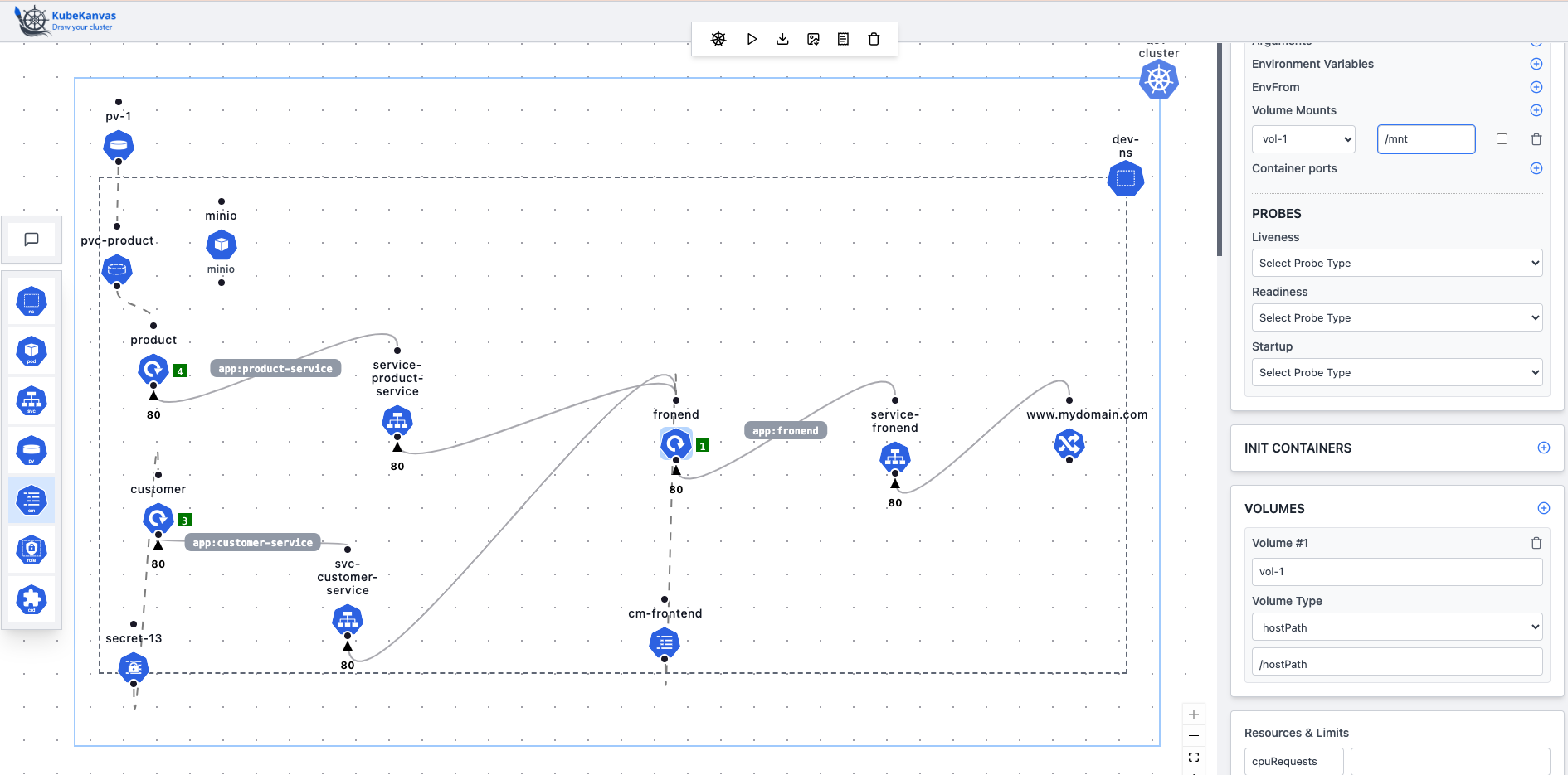 Kubekanvas is an innovative, browser-based visual editor designed to simplify the management and configuration of Kubernetes resources. It provides an intuitive, drag-and-drop interface that allows users to design, configure, and generate YAML manifests for Kubernetes resources—without the need to manually write or edit YAML code.